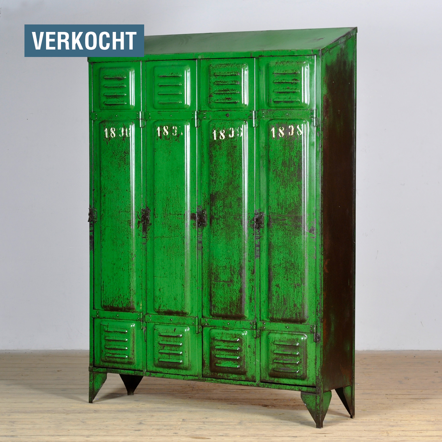 This locker was made in France around 1950 and has four compartments to store all your belongings. In the upper part a shelf and in the lower part clothes hooks. The locker has a green color that fits with any style. The locker has a rustic and weathered look that testifies to its history and character.