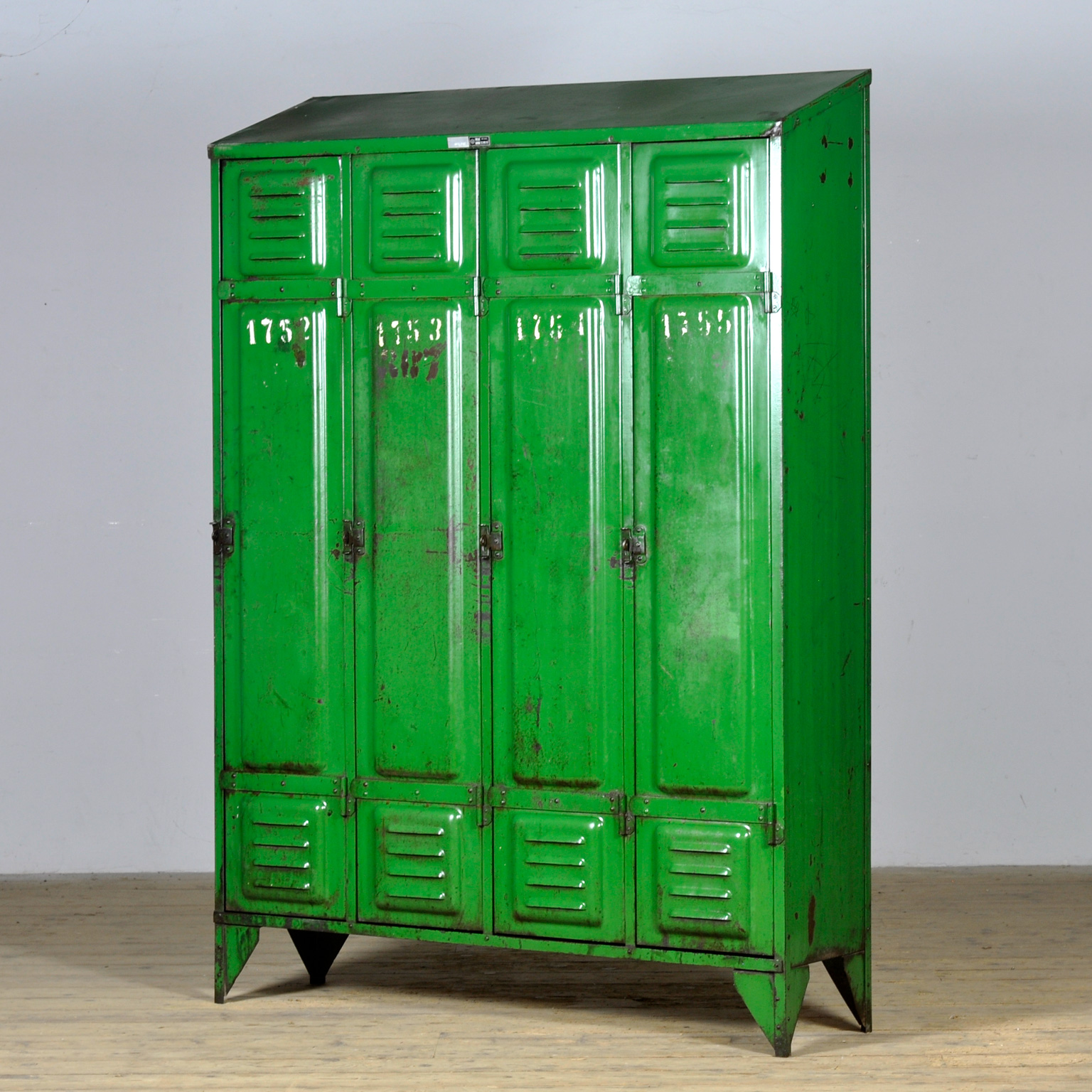 This locker was made in France around 1950 and has four compartments to store all your belongings. In the upper part a shelf and in the lower part clothes hooks. The locker has a green color that fits with any style. The locker has a rustic and weathered look that testifies to its history and character.