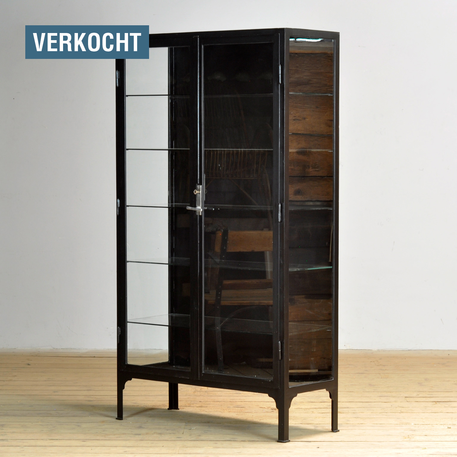 The cabinet has recently been repainted in matt black.