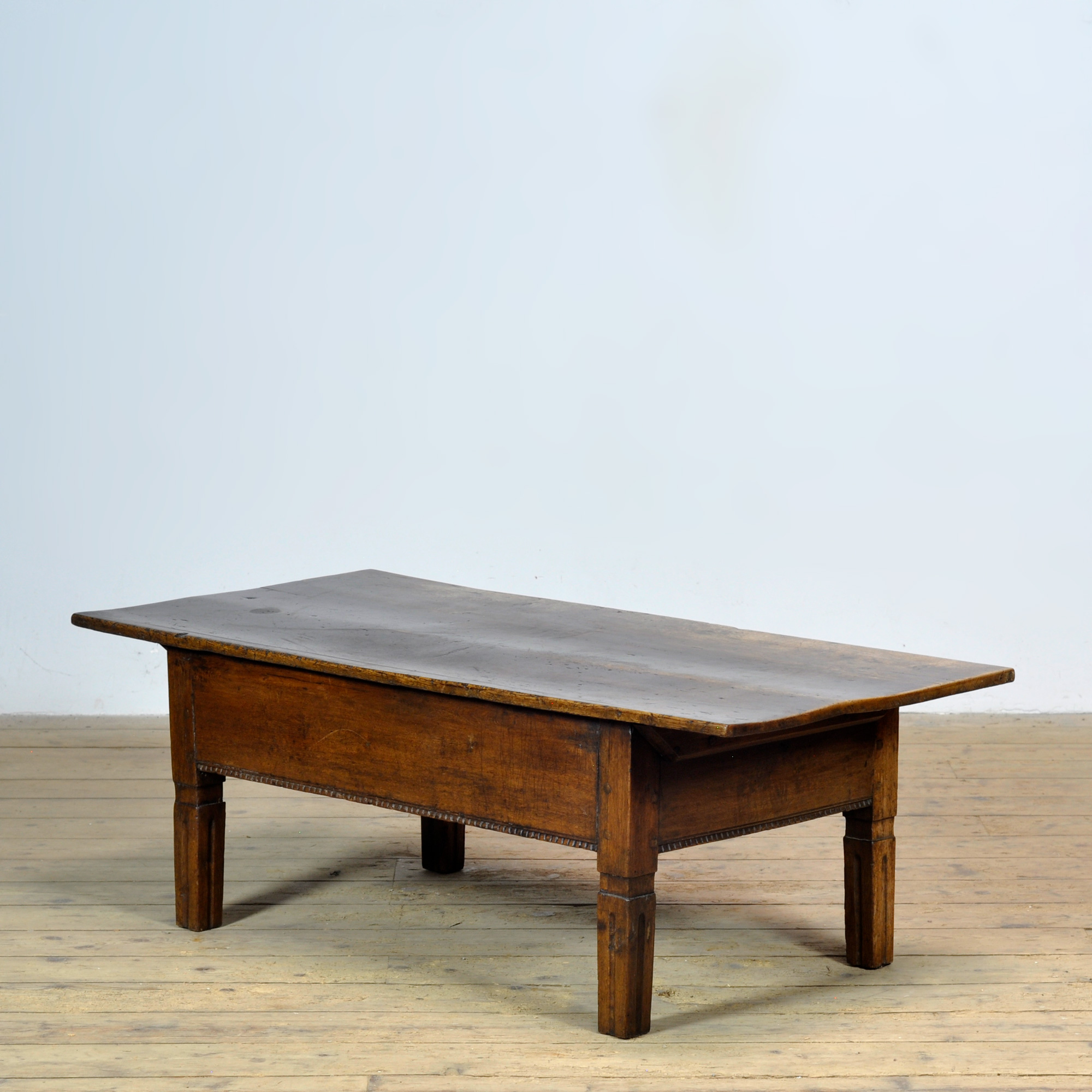 The understated, timeless design combined with the rich patina makes this coffee table a versatile piece that looks equally at home in a classic or contemporary interior. A beautiful and functional antique object with a story, adding atmosphere and character to any room.