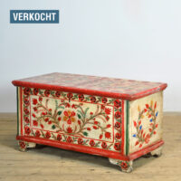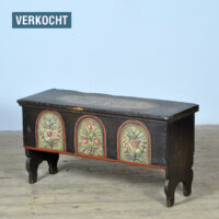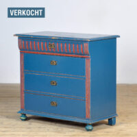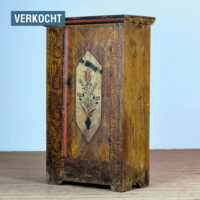 Original antique Swedish cabinet with blue-green folklore-style painting, dated 1906