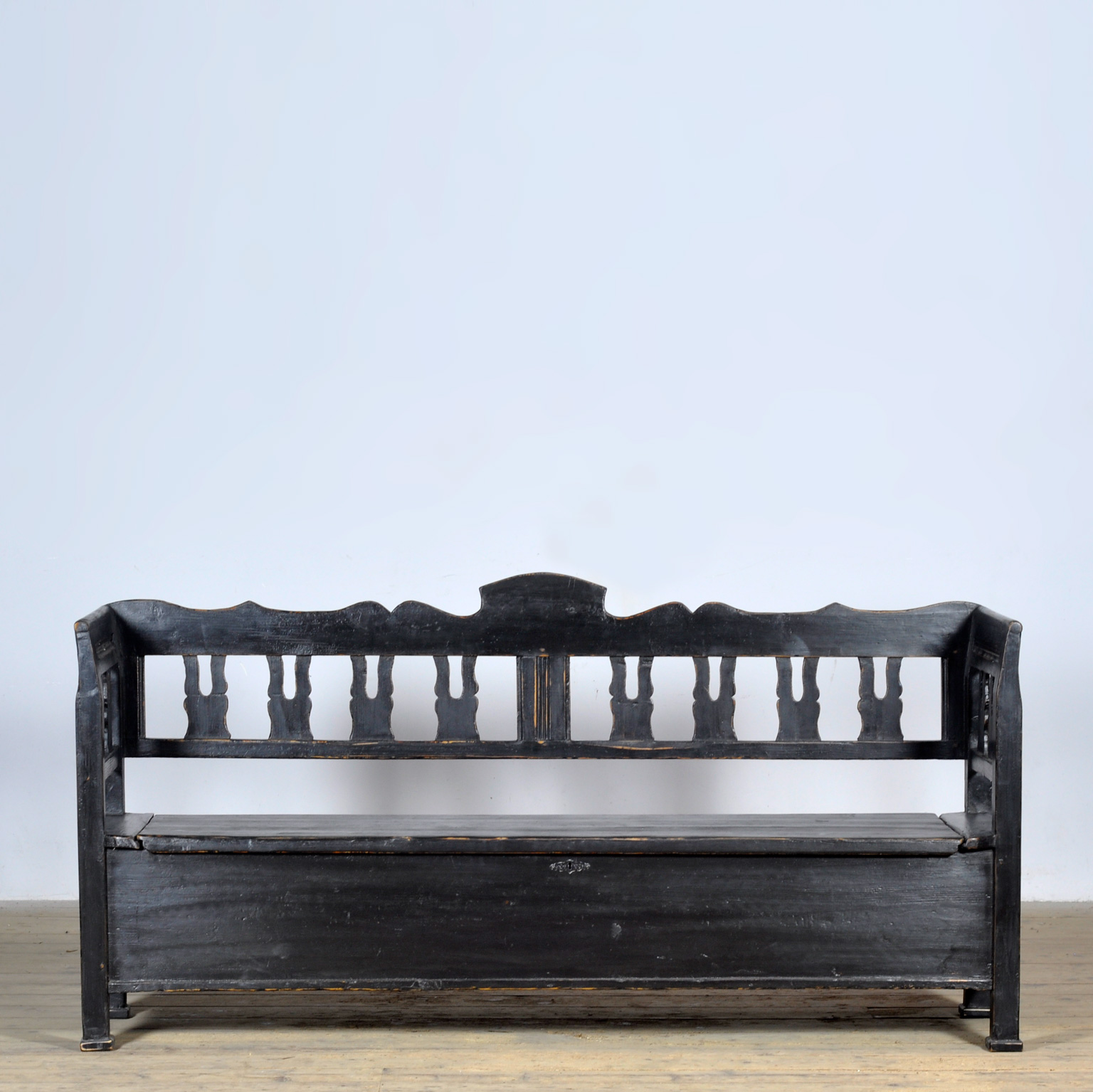 Een charmante, authentieke Hongaarse bank uit circa 1900 — een prachtig stuk vakmanschap met karakter en historie. De originele zwarte verf is op natuurlijke wijze door de jaren heen afgesleten, waardoor het warme hout subtiel zichtbaar is geworden en de bank een prachtige, doorleefde uitstraling heeft gekregen. Onder de zitting bevindt zich een royale opbergruimte, handig ingedeeld in drie compartimenten — perfect voor het opbergen van kussens, plaids of andere spullen. De bank is stevig, stabiel en volledig vrij van houtworm. Een sfeervol meubelstuk dat moeiteloos charme en authenticiteit toevoegt aan elk interieur, van landelijk tot industrieel.