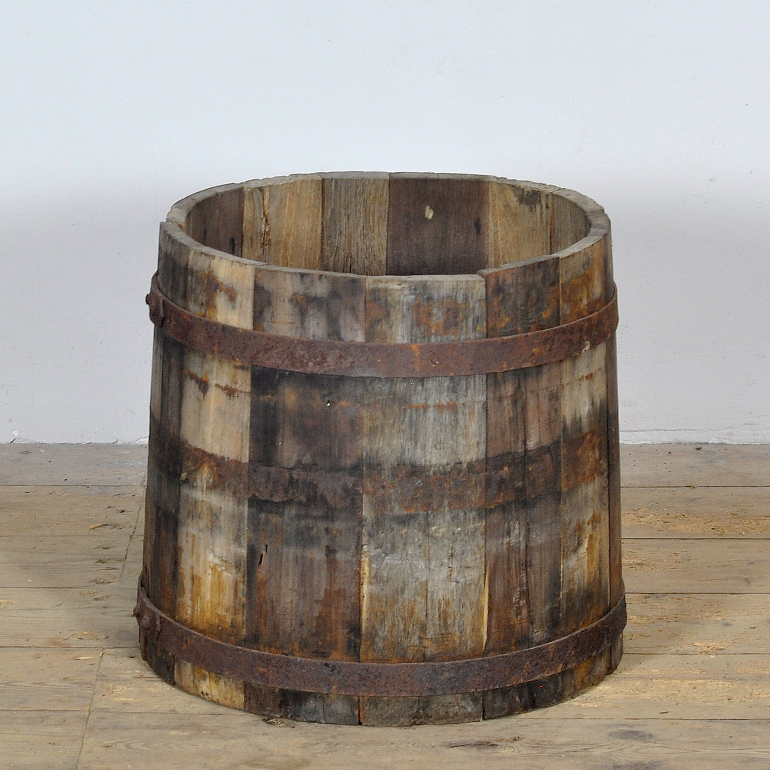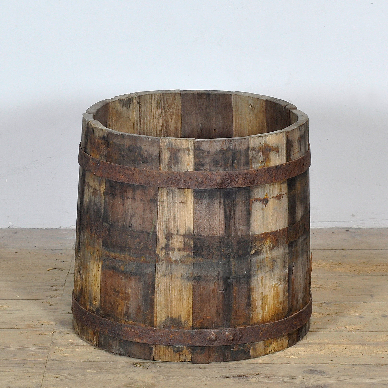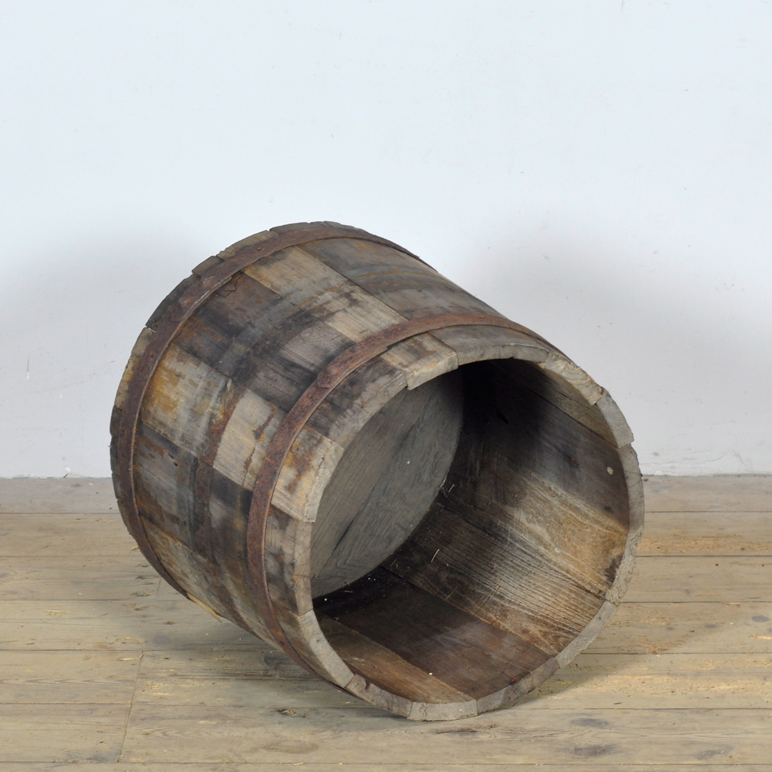 Authentieke eiken opslag ton met een robuuste en rustieke uitstraling. Deze stevige ton is gemaakt van massief eikenhout en versterkt met ijzeren banden voor extra duurzaamheid. De natuurlijke veroudering van het hout geeft de ton een karaktervolle, vintage look. Perfect te gebruiken als decoratief element in huis, tuin of horecazaak. Ook ideaal als plantenbak of originele opbergoplossing. De ton is stevig, stabiel en volledig functioneel. Een uniek stuk dat sfeer en geschiedenis toevoegt aan elke ruimte.