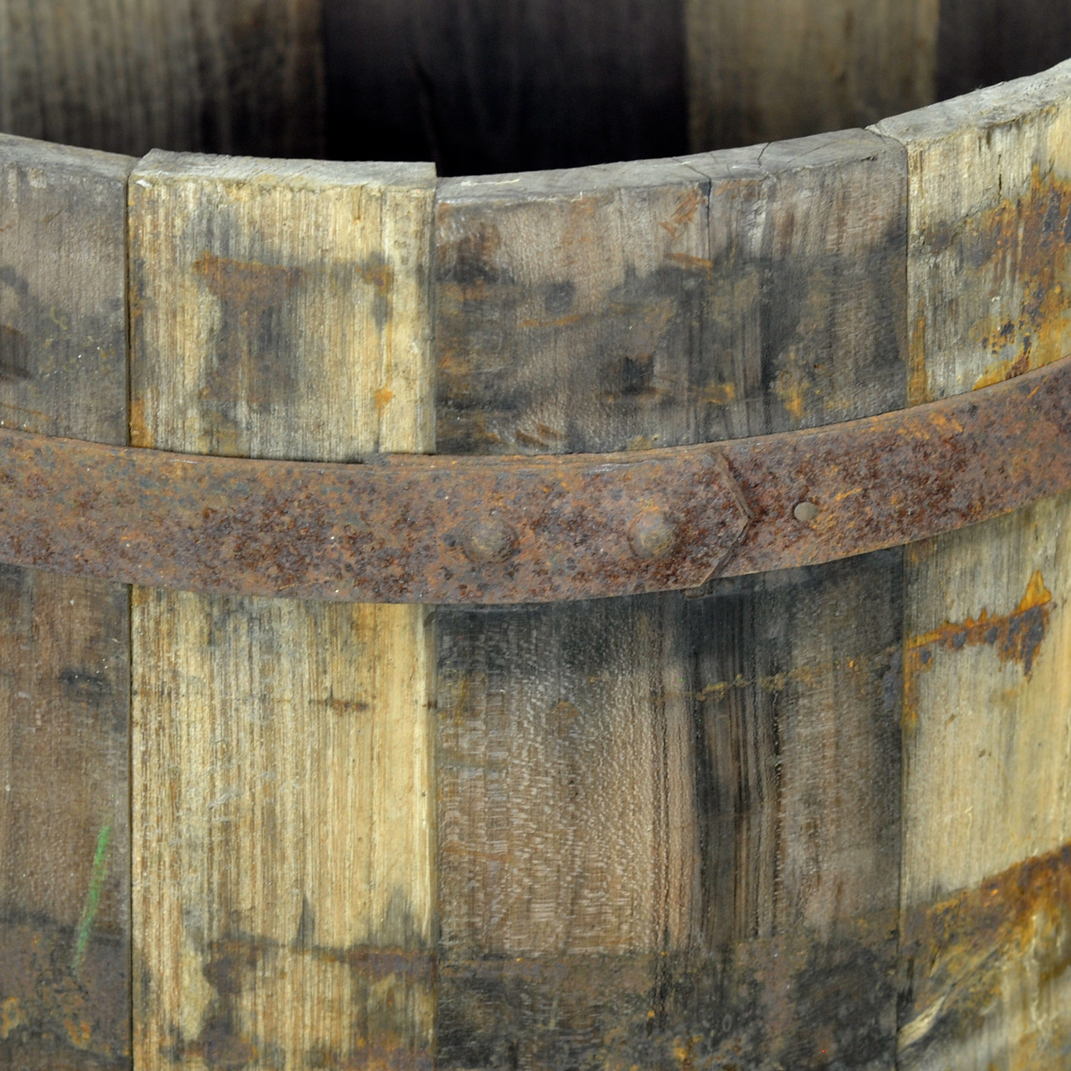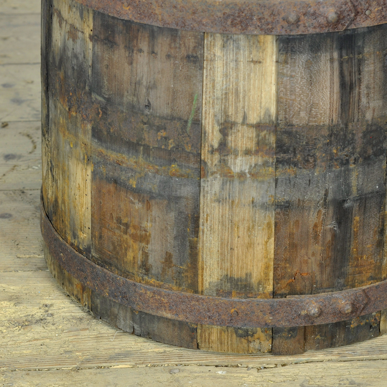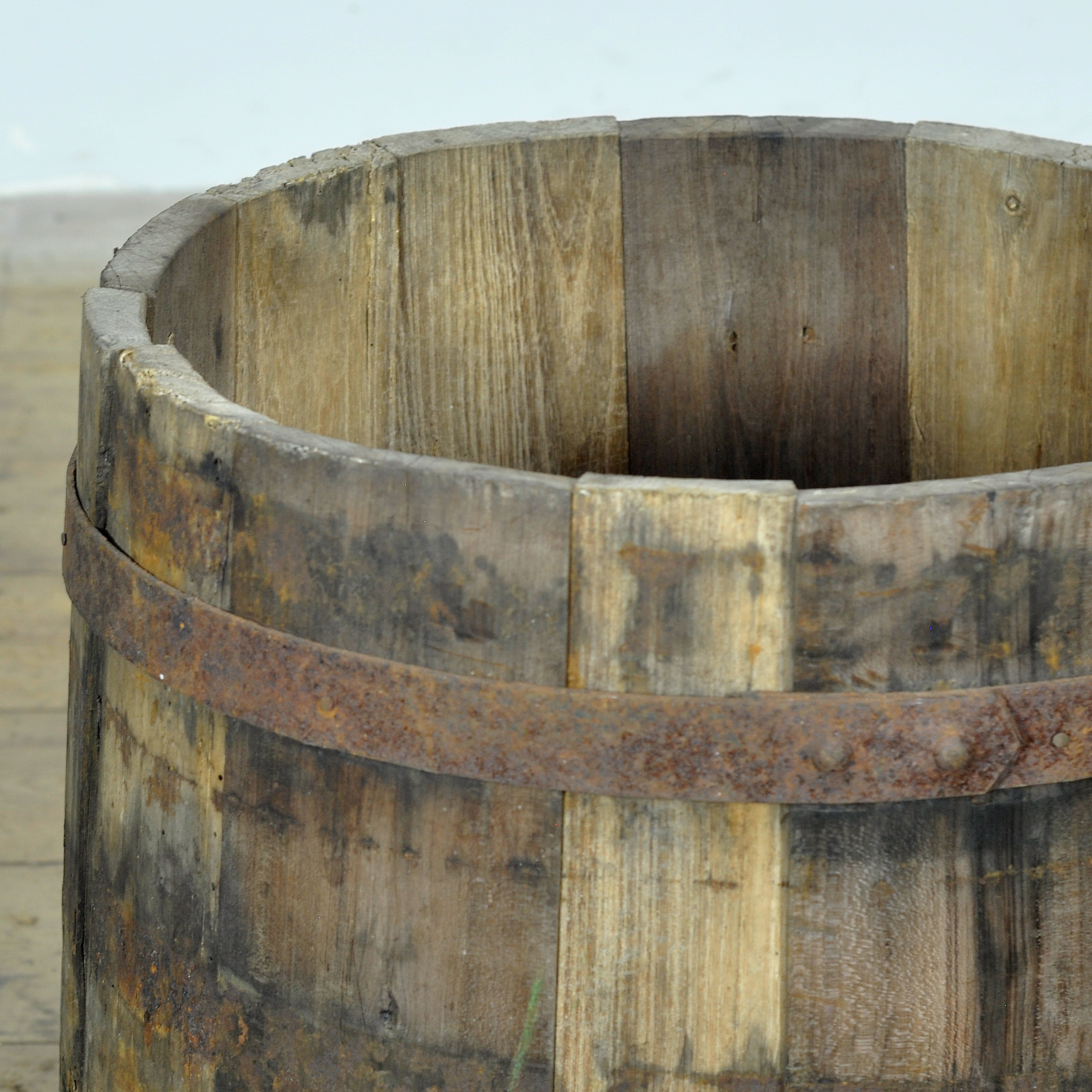 Authentieke eiken opslag ton met een robuuste en rustieke uitstraling. Deze stevige ton is gemaakt van massief eikenhout en versterkt met ijzeren banden voor extra duurzaamheid. De natuurlijke veroudering van het hout geeft de ton een karaktervolle, vintage look. Perfect te gebruiken als decoratief element in huis, tuin of horecazaak. Ook ideaal als plantenbak of originele opbergoplossing. De ton is stevig, stabiel en volledig functioneel. Een uniek stuk dat sfeer en geschiedenis toevoegt aan elke ruimte.