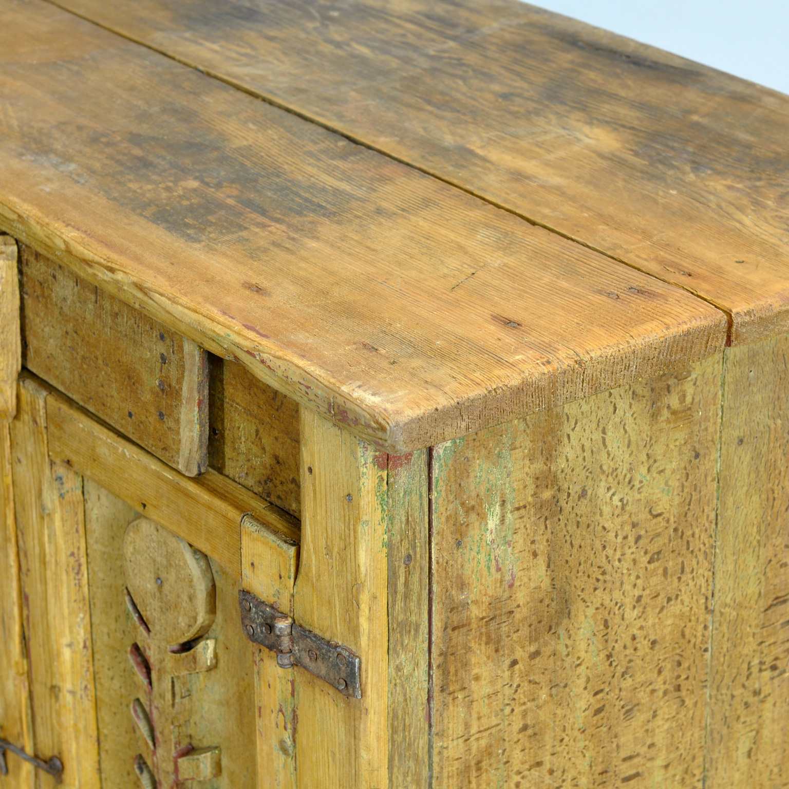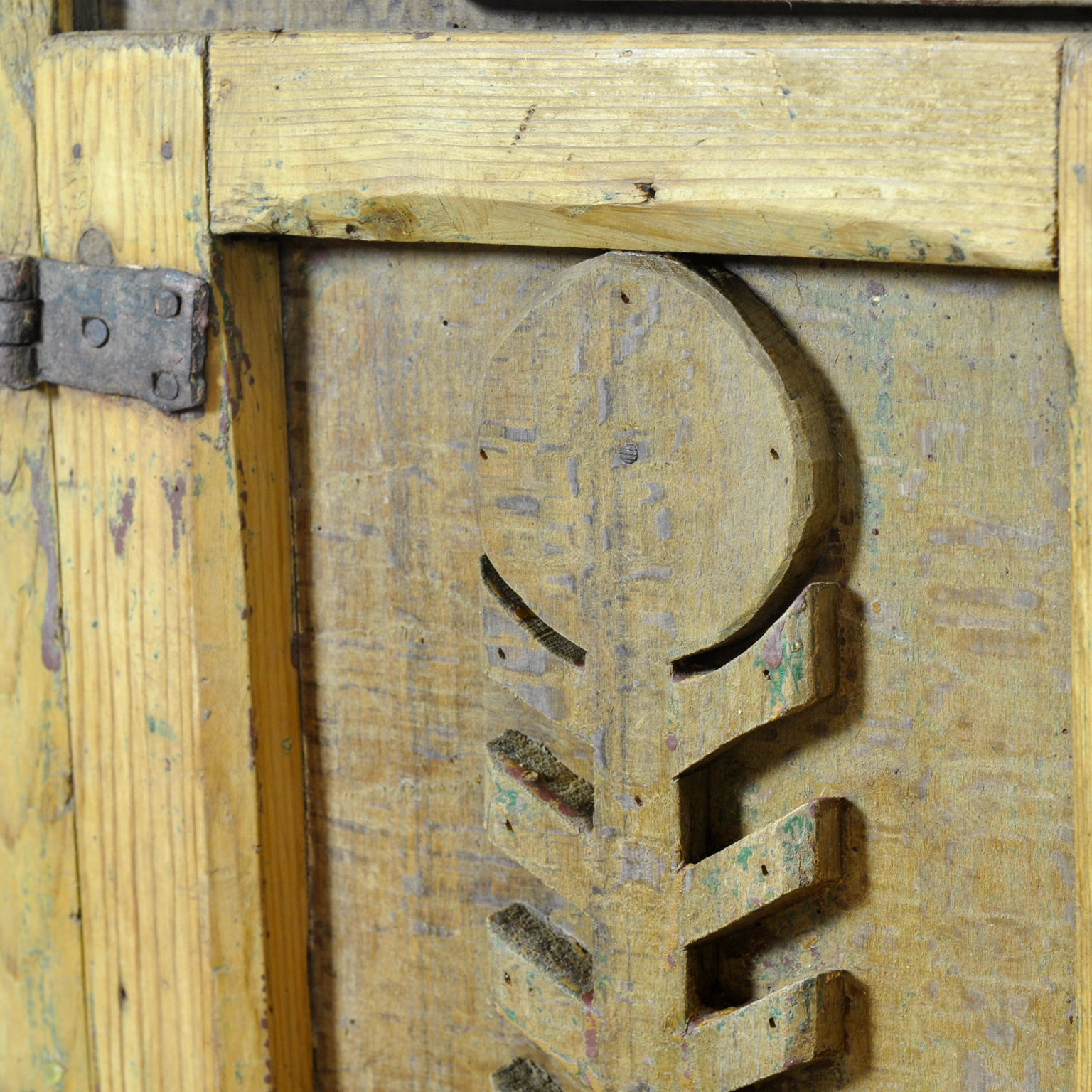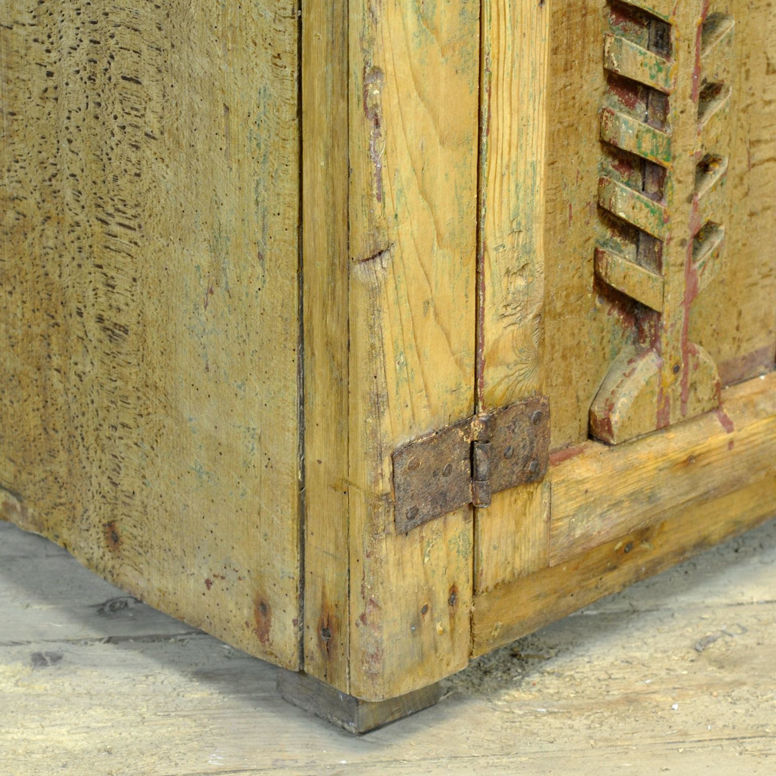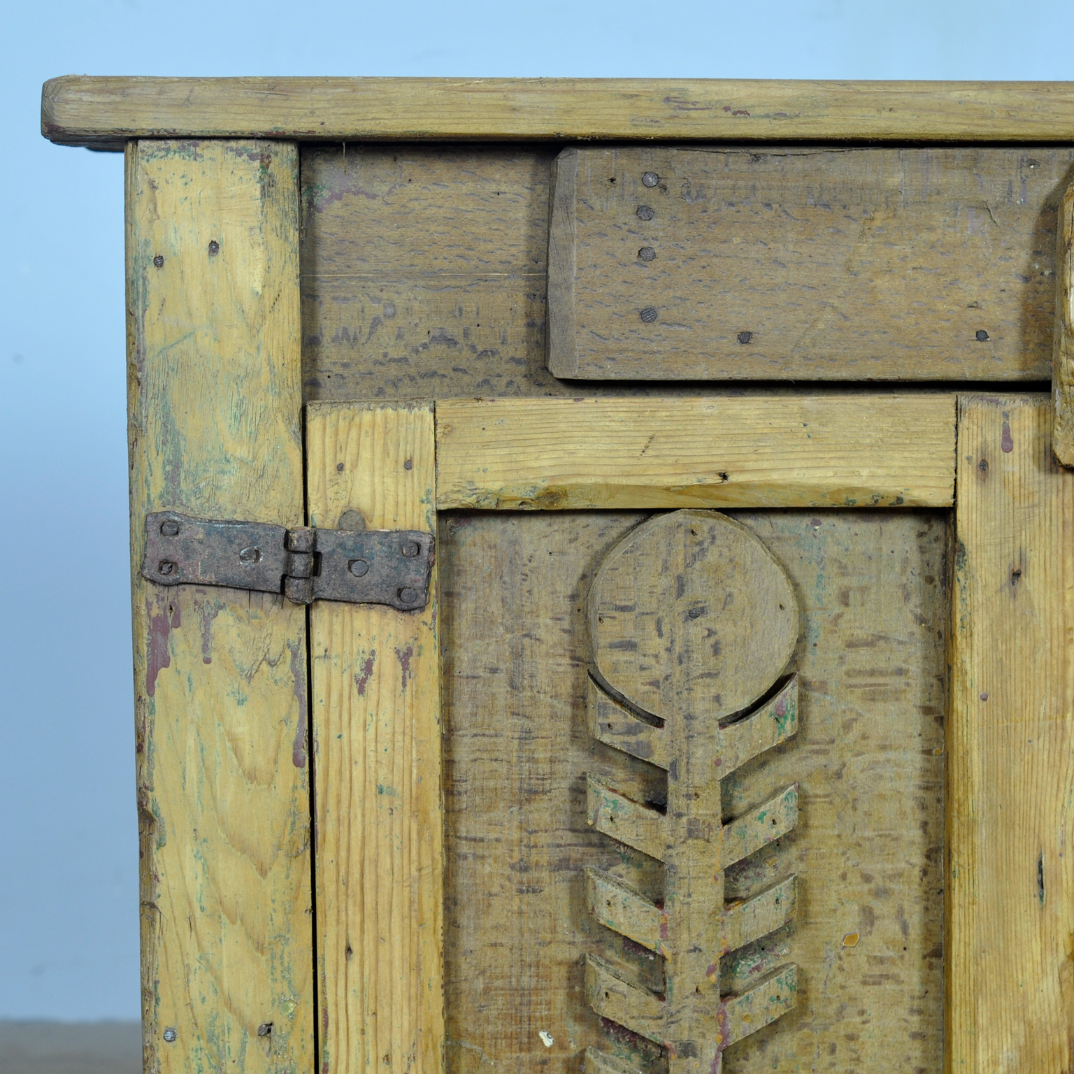 Dit charmante folk art kastje uit Transsylvanië, vervaardigd rond 1880, is een prachtig voorbeeld van traditioneel ambacht. Het meubel is gemaakt van sparren- en grenenhout en straalt een warme, authentieke uitstraling uit. De twee deuren zijn voorzien van uitgesneden graansymbolen – een ode aan vruchtbaarheid en oogst. Met zijn robuuste bouw, originele patina en unieke decoratieve details is dit kastje niet alleen functioneel, maar ook een sfeervolle blikvanger in ieder interieur.