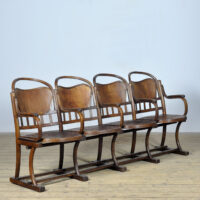 Parkbank uit de jaren ’20. De bank heeft een zwaar geklonken ijzeren onderstel met houten latten.