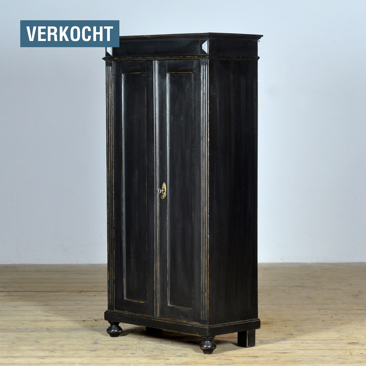 Deze karaktervolle kast, vervaardigd in Hongarije in de jaren ’30, vormt een tijdloos en stijlvol meubelstuk voor ieder interieur. De kast is gemaakt van grenen. De kast beschikt over vijf verstelbare planken, waardoor je de indeling eenvoudig kunt aanpassen aan jouw wensen — ideaal voor het opbergen van servies, boeken, linnengoed of andere items. Het meubel is voorzien van het originele beslag, wat bijdraagt aan zijn klassieke uitstraling en historische charme. Het subtiel verweerde zwarte oppervlak en de elegante lijnen geven de kast een statige, doch warme aanblik.