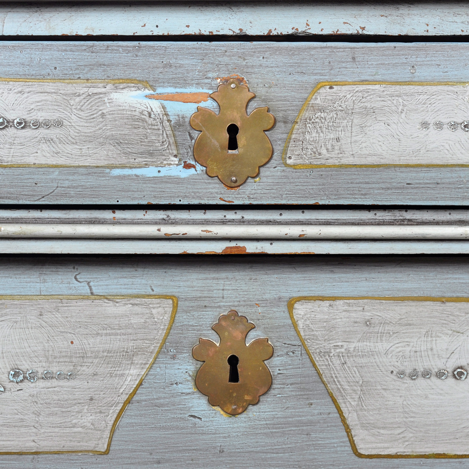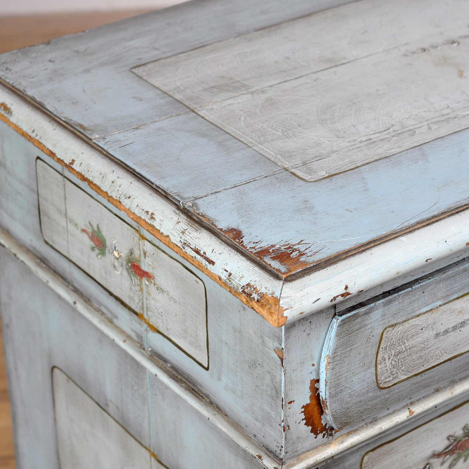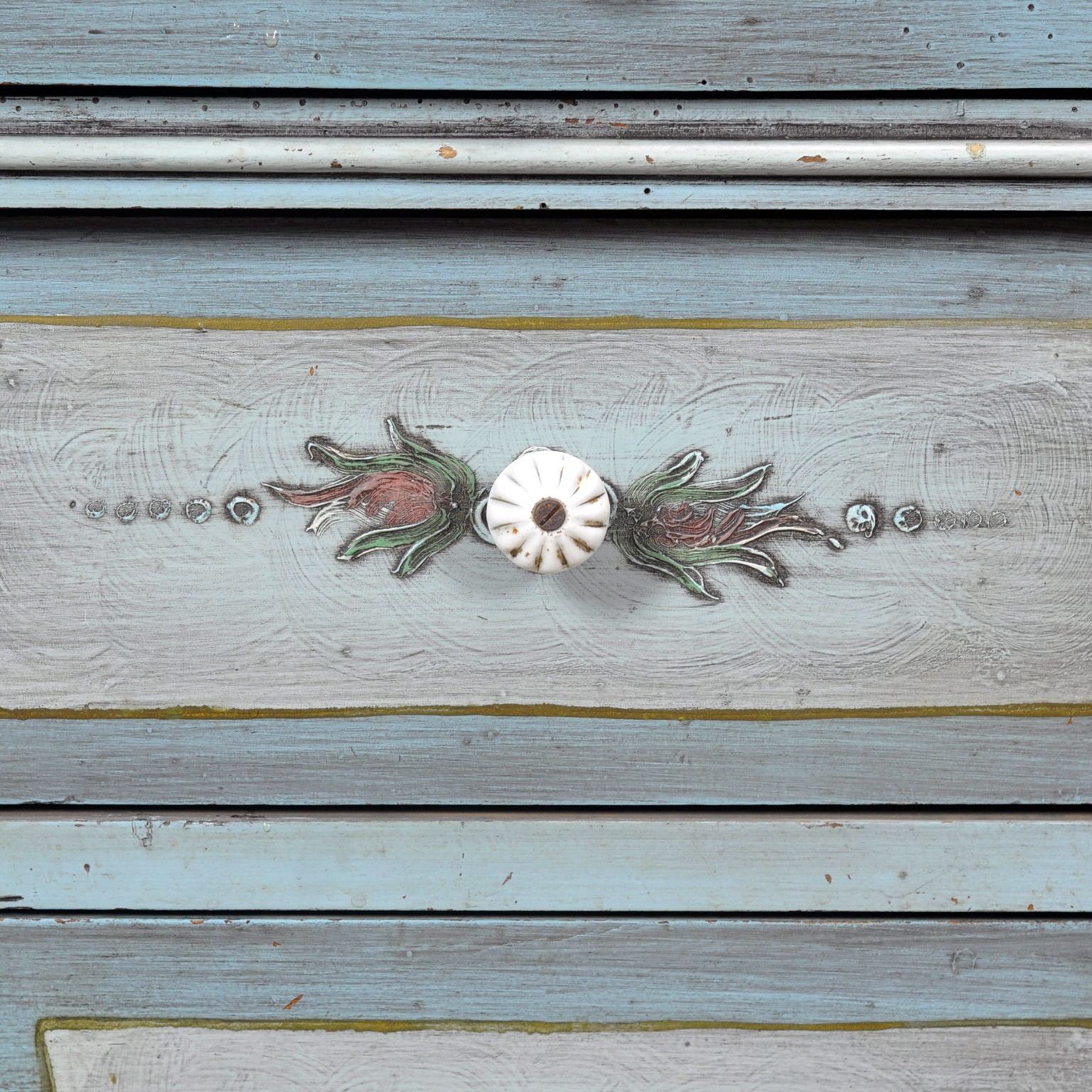 Dit meubelstuk betreft een 19e-eeuwse ladekast met Gustaviaanse invloeden, een Zweedse neoklassieke stijl die populair was van de late 18e tot het midden van de 19e eeuw. Vervaardigd uit grenenhout rond 1870, weerspiegelt het de verfijnde Scandinavische traditie.