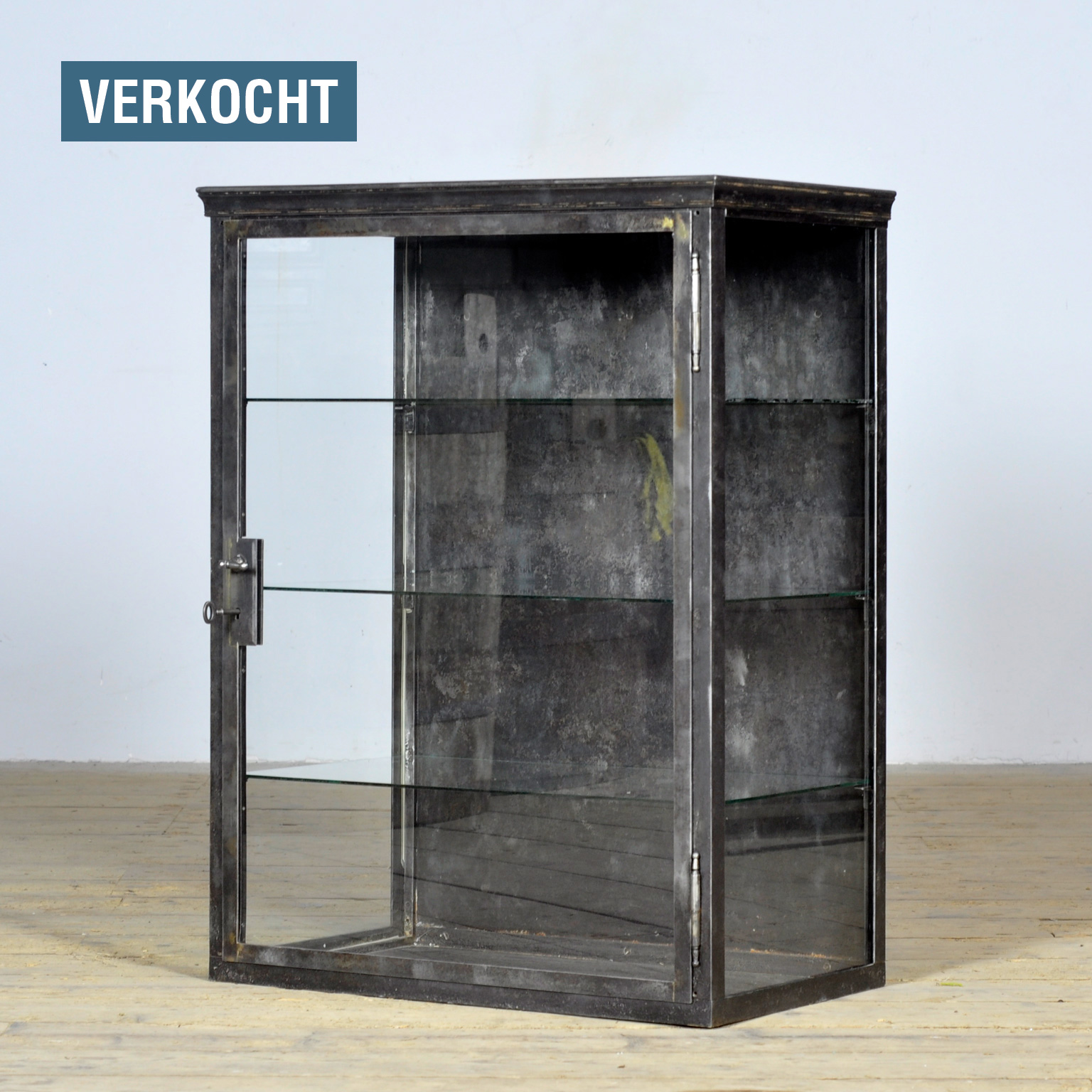 Dit gepolijste ijzeren vitrinekast uit de jaren 1920 straalt pure industriële charme uit. Met zijn stoere metalen frame en glazen wanden biedt hij een stijlvolle manier om je mooiste verzamelingen of curiosa te presenteren. De kast heeft drie glazen legplanken en een stevige deur met originele sluiting. Perfect voor liefhebbers van vintage en industrieel design die karakter en authenticiteit waarderen.