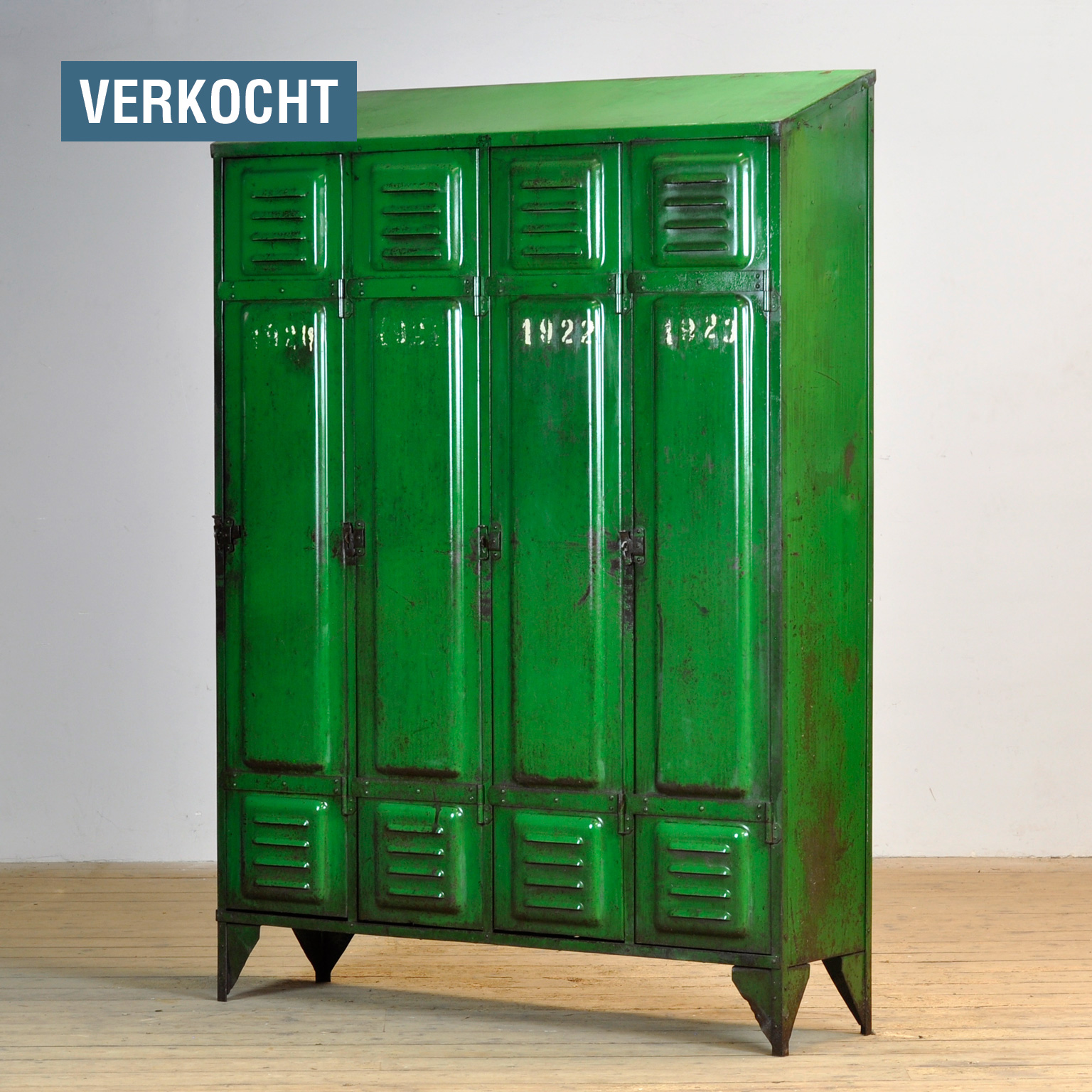 Deze locker is rond 1950 in Frankrijk gemaakt en heeft vier compartimenten om al uw spullen in op te bergen. In het bovenste gedeelte een schap en in het onderste gedeelte kledinghaken. De locker heeft een groene kleur die bij elke stijl past. De locker heeft een rustieke en verweerde look die getuigt van zijn geschiedenis en karakter.