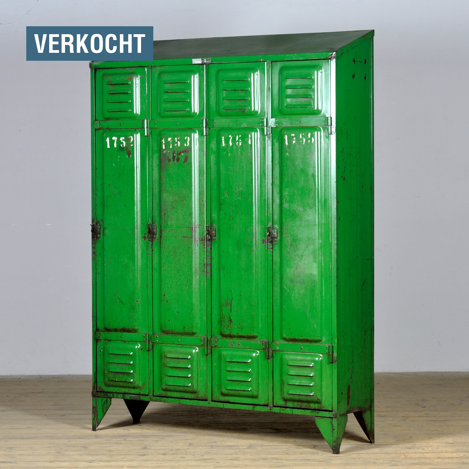 Deze locker is rond 1950 in Frankrijk gemaakt en heeft vier compartimenten om al uw spullen in op te bergen. In het bovenste gedeelte een schap en in het onderste gedeelte kledinghaken. De locker heeft een groene kleur die bij elke stijl past. De locker heeft een rustieke en verweerde look die getuigt van zijn geschiedenis en karakter.