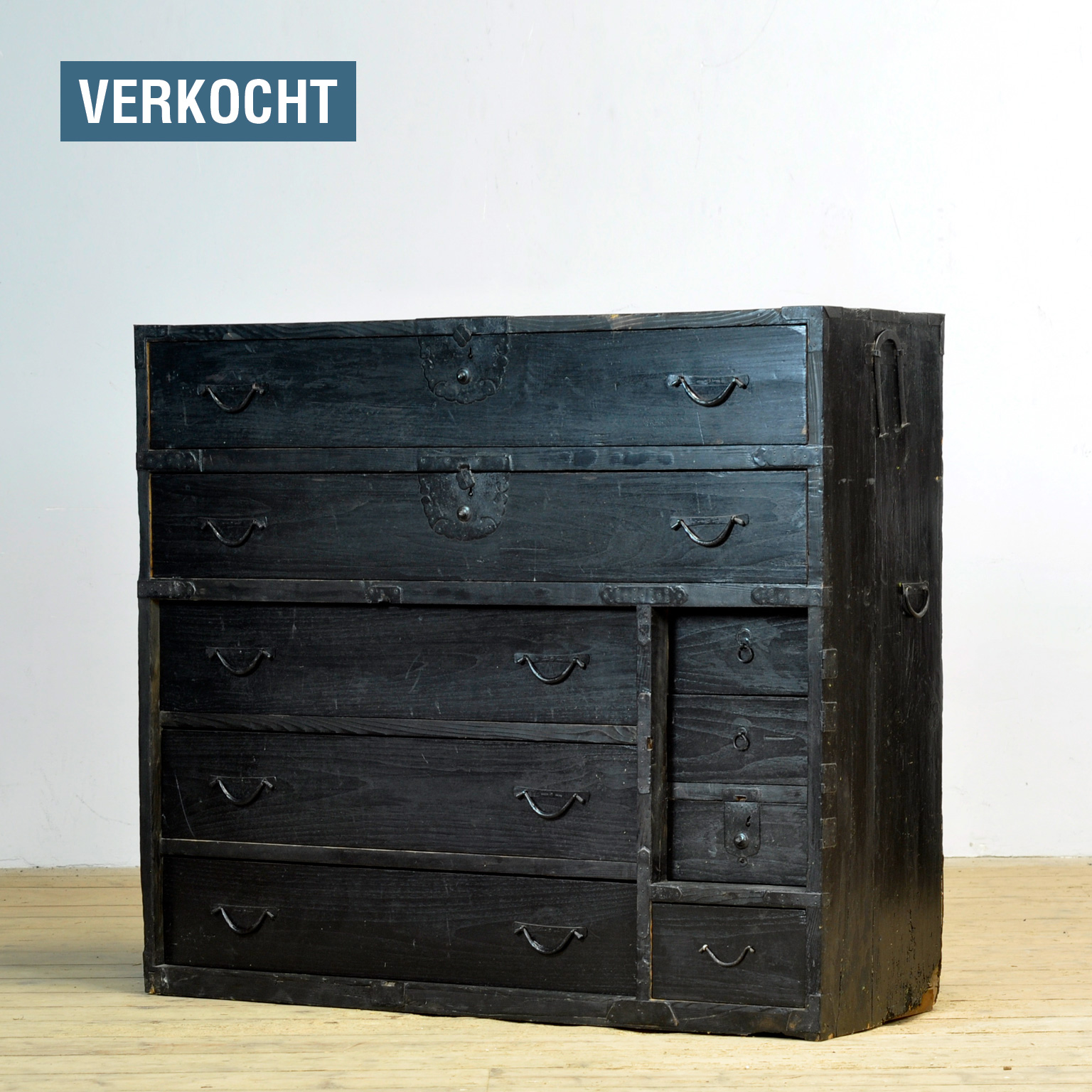 Japanse traditionele Tansu ladekast uit de jaren 1870. Vervaardigd tijdens het late Meiji-tijdperk (1868-1912). Dit meubelstuk straalt authenticiteit en karakter uit. De kast heeft een warme, doorleefde uitstraling die de tand des tijds heeft doorstaan. Functioneel en charmant, deze Tansu biedt veelzijdige opbergruimte, perfect voor het opbergen van documenten of persoonlijke spullen. Een stuk dat een unieke, historische toets geeft aan elk modern of klassiek interieur.