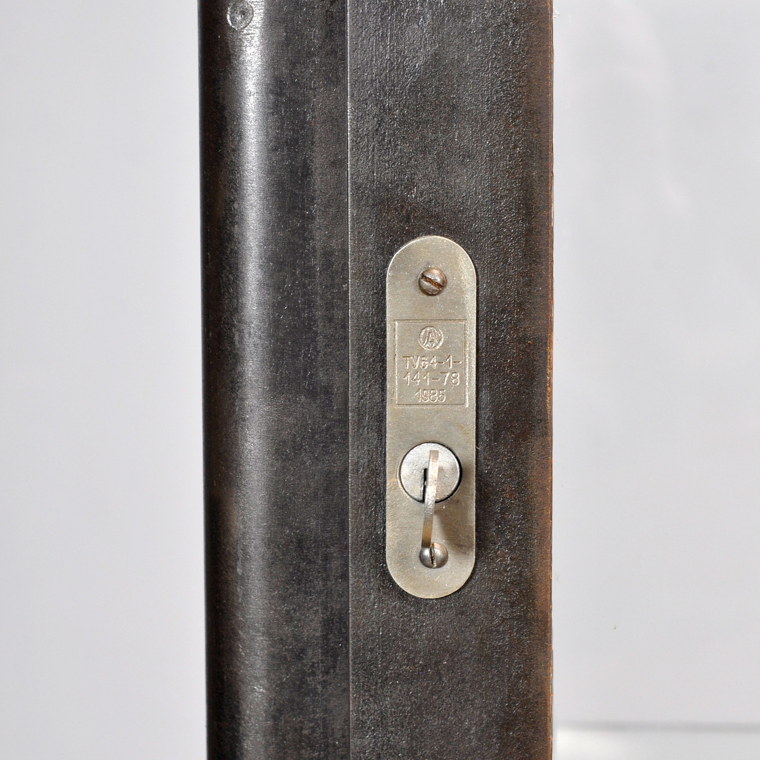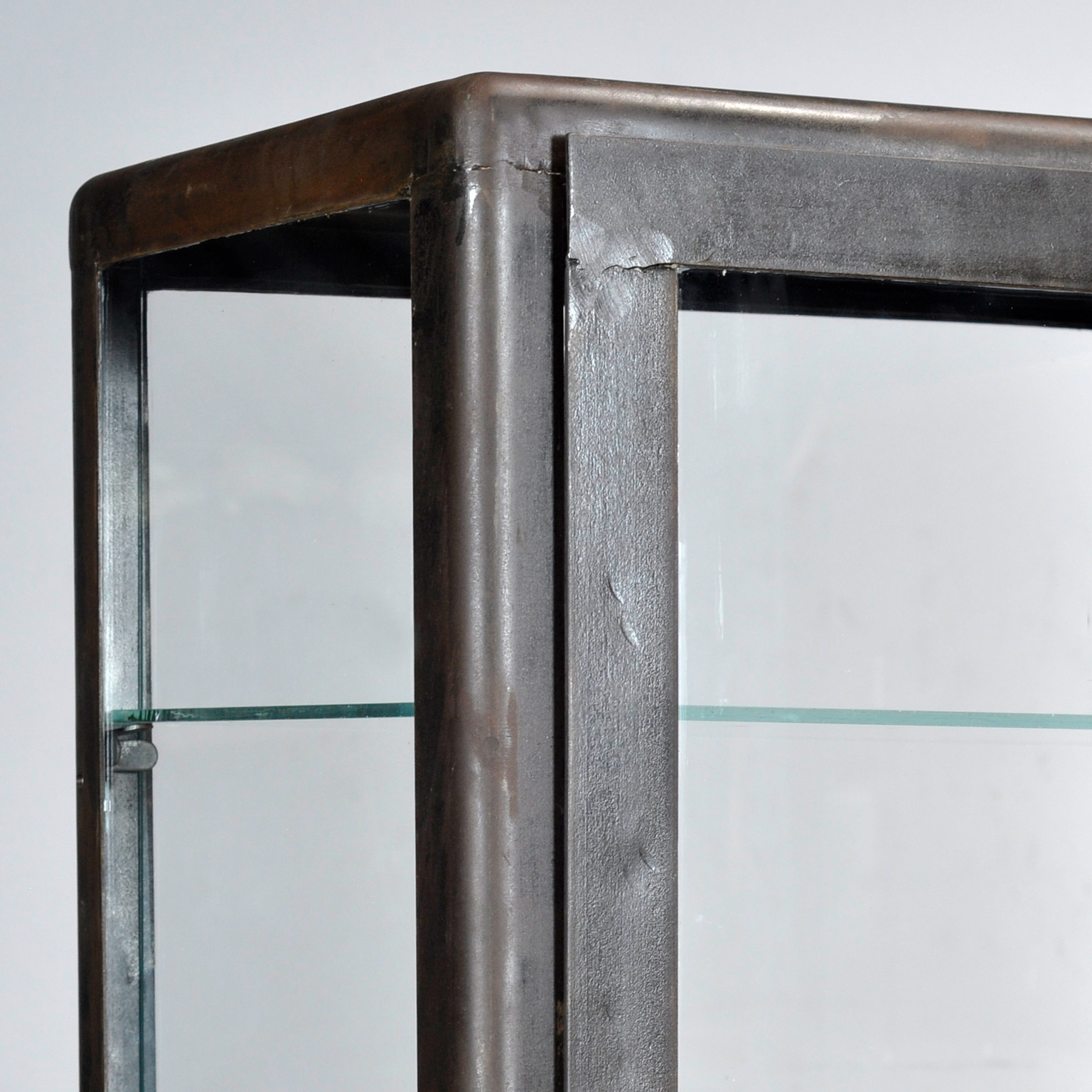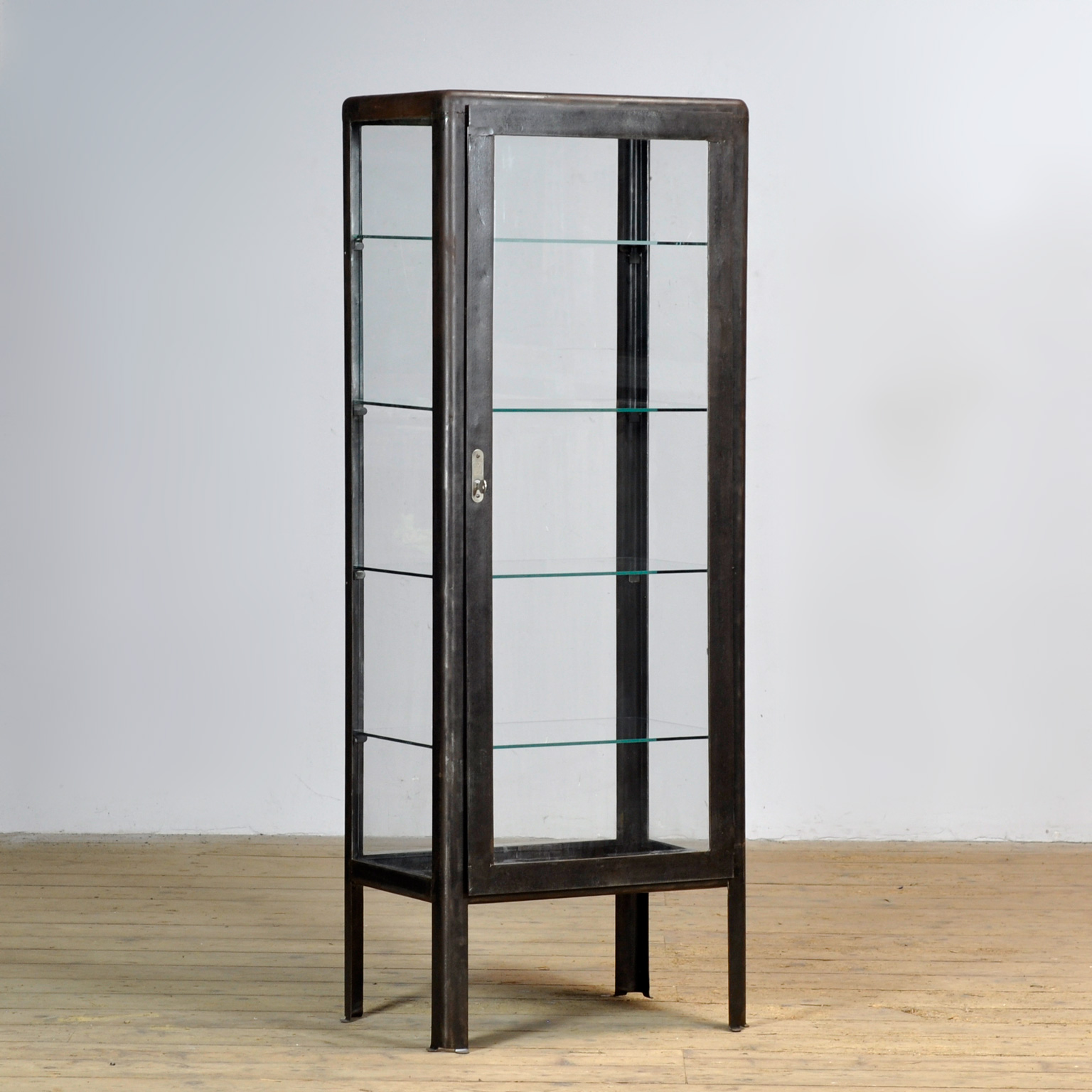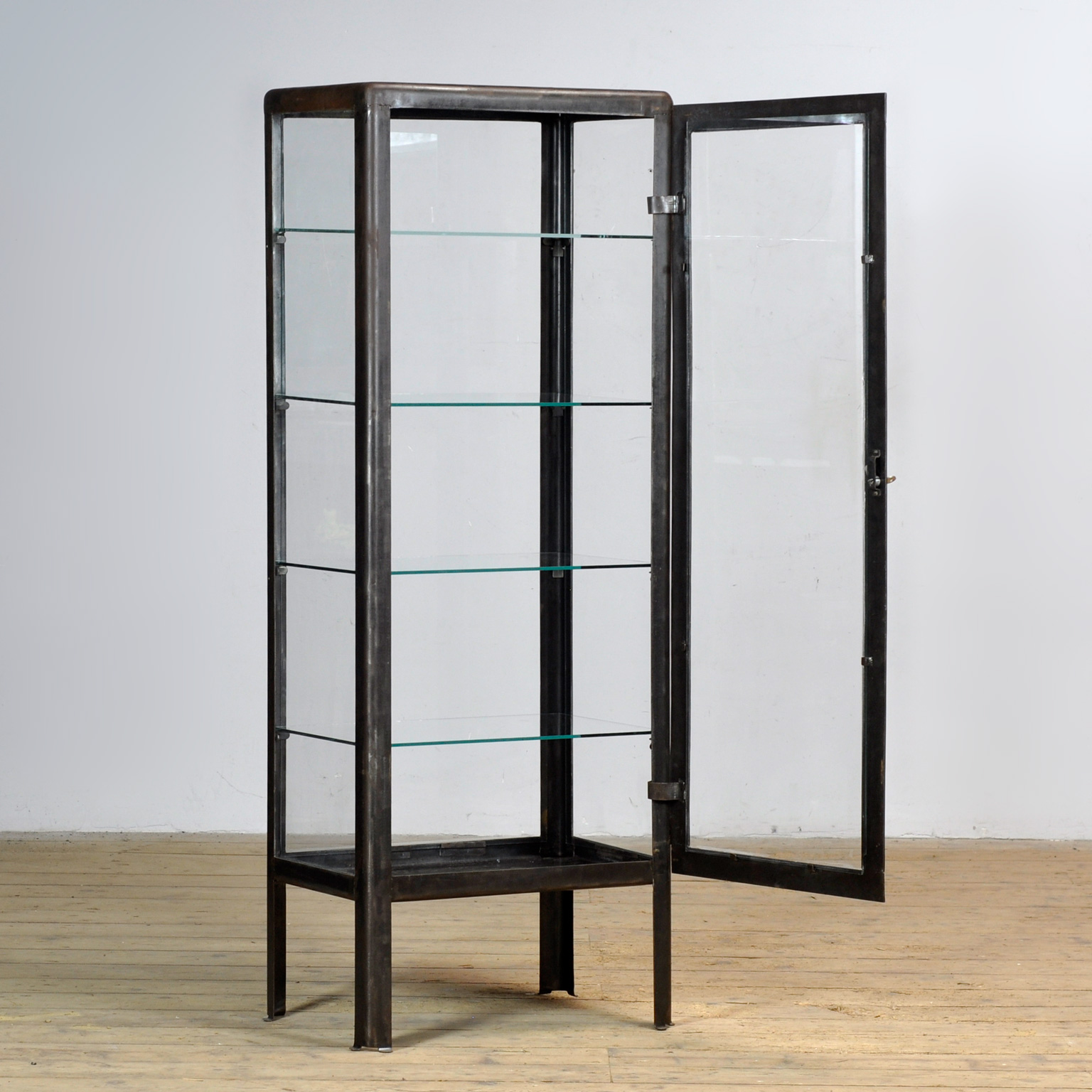 Deze medicijnkast uit Oekraïne is een stuk met glas aan alle vier de zijden, waardoor je items prachtig zichtbaar zijn. Het metalen frame is volledig gestript van verf, wat zorgt voor een stoere, industriële uitstraling. Met zijn glazen legplanken en solide constructie is dit een perfect meubel voor het stijlvol presenteren van je objecten.