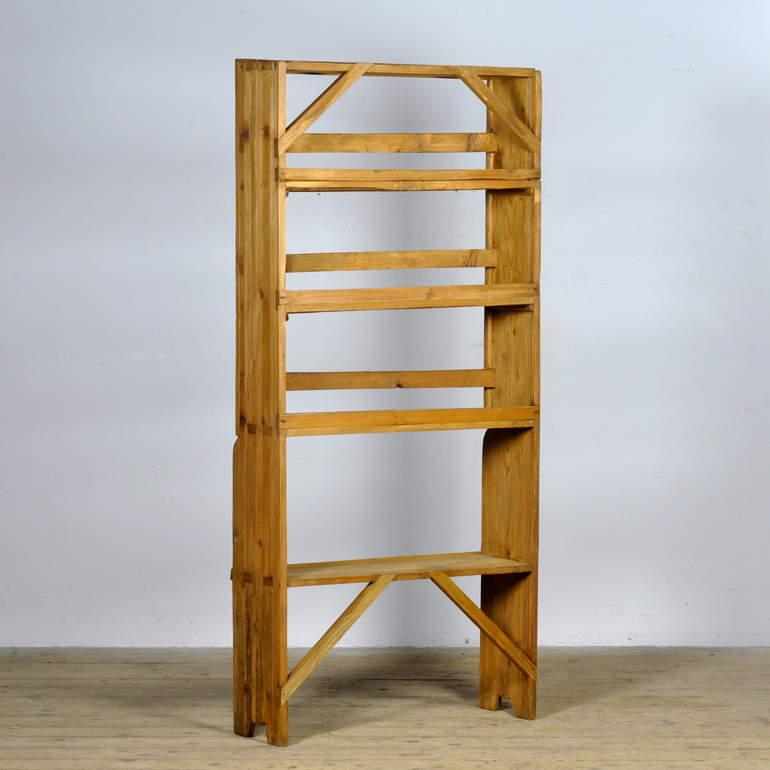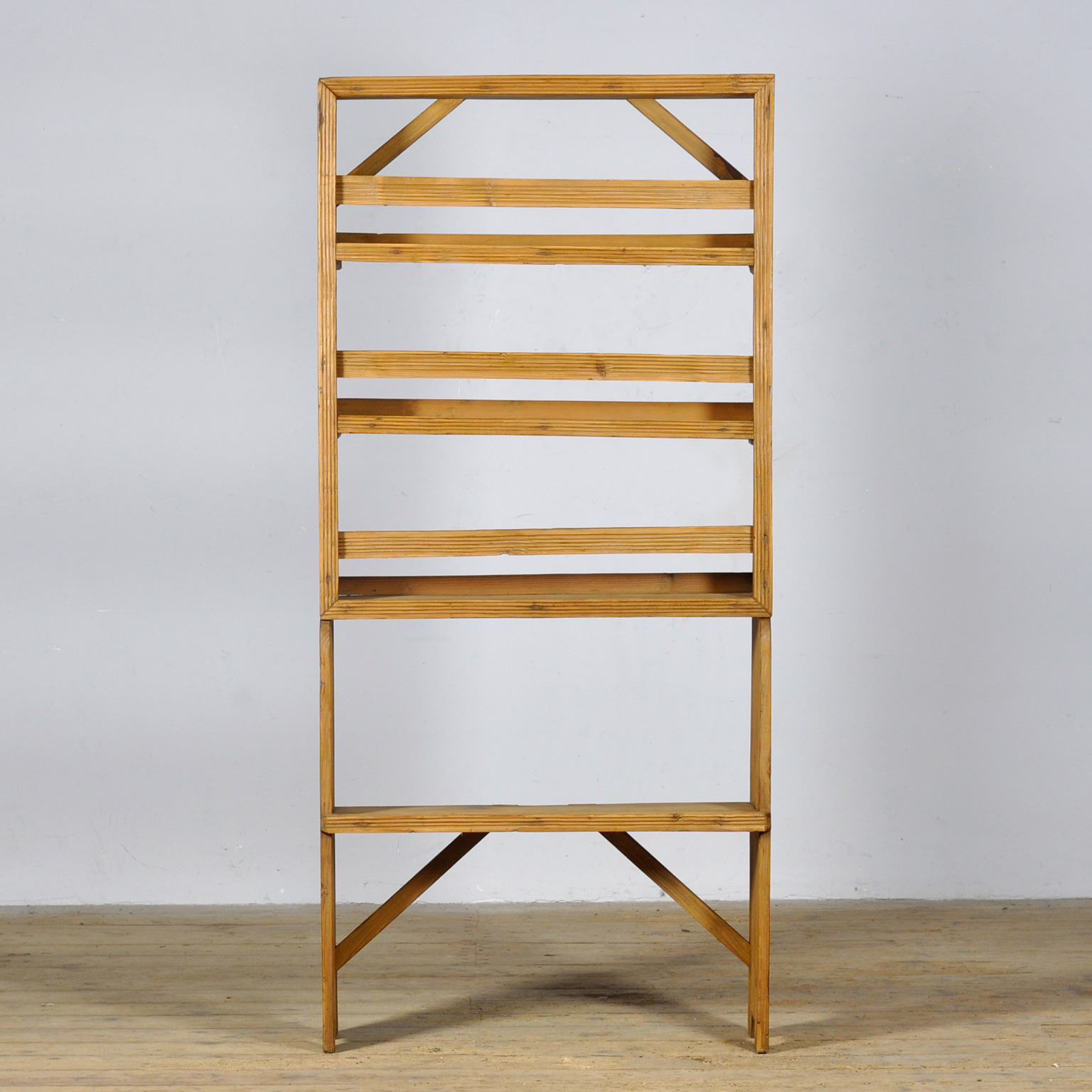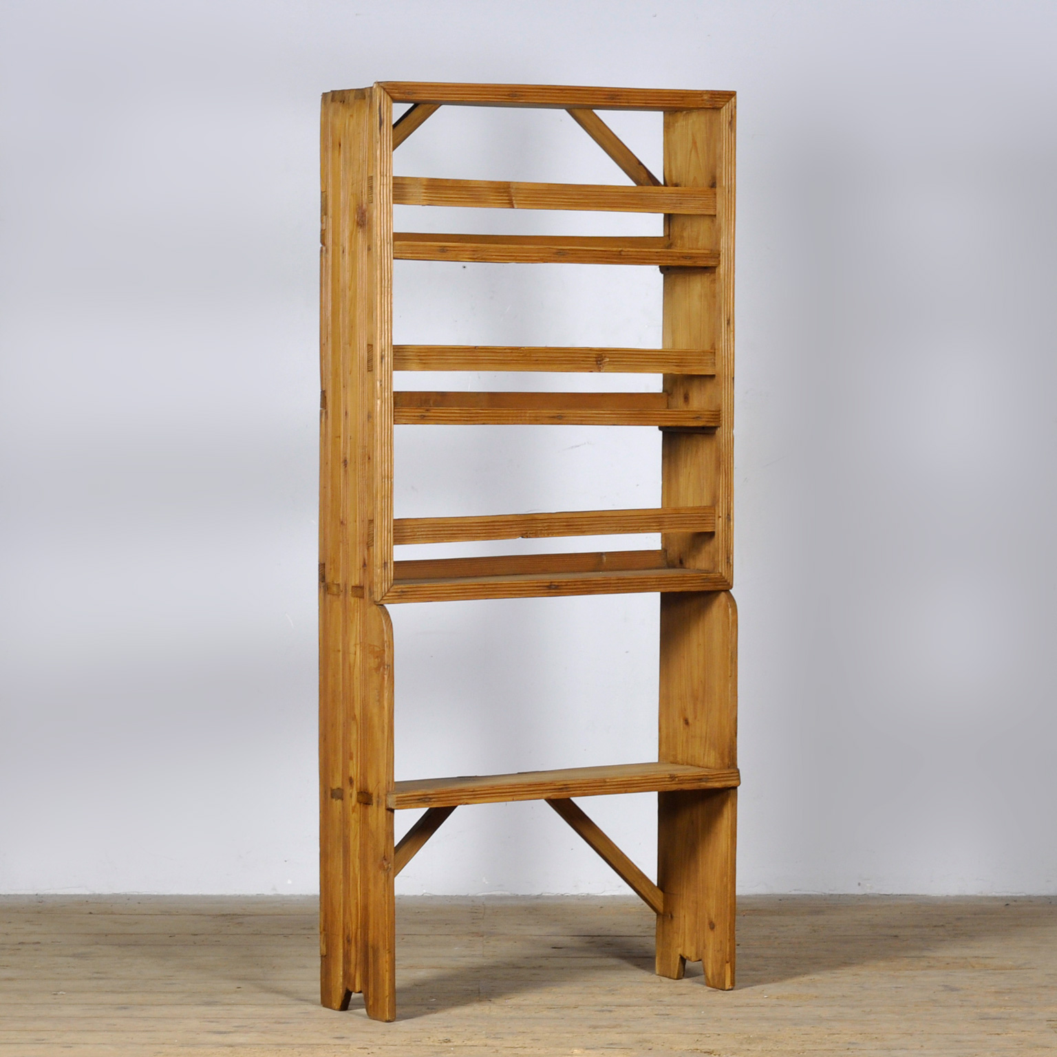 Deze open grenen kast uit circa 1930 is een charmant en functioneel meubel met een warme, authentieke uitstraling. De kast is voorzien van latjes aan de planken, waardoor boeken, servies of decoratieve items stevig op hun plek blijven en er niet uit kunnen vallen. Het natuurlijke grenenhout heeft een mooie, doorleefde patina die past bij zowel een landelijk als industrieel interieur. Dankzij het open ontwerp oogt de kast licht en ruimtelijk, ideaal voor de keuken, woonkamer of winkelpresentatie. Een karaktervolle vintage kast met praktische details en tijdloze uitstraling.