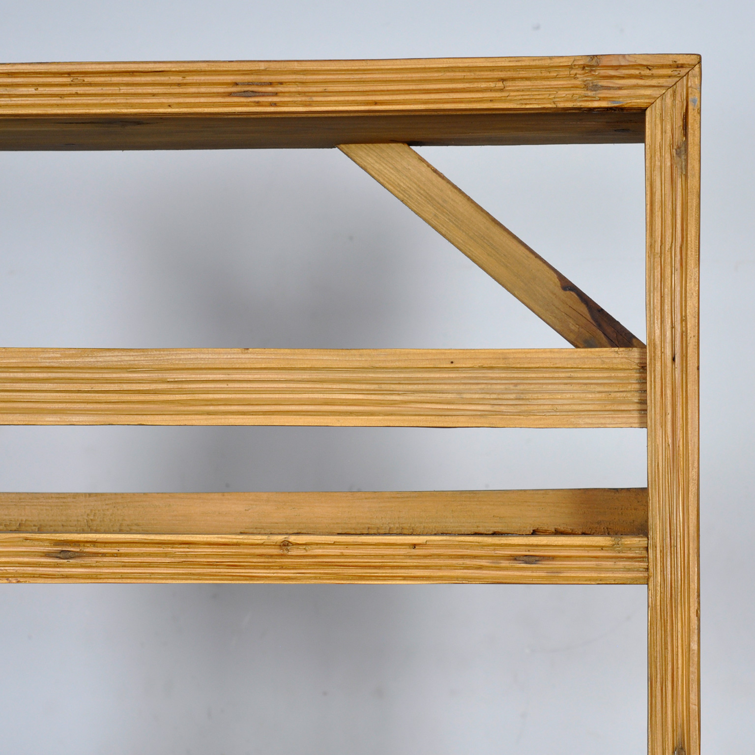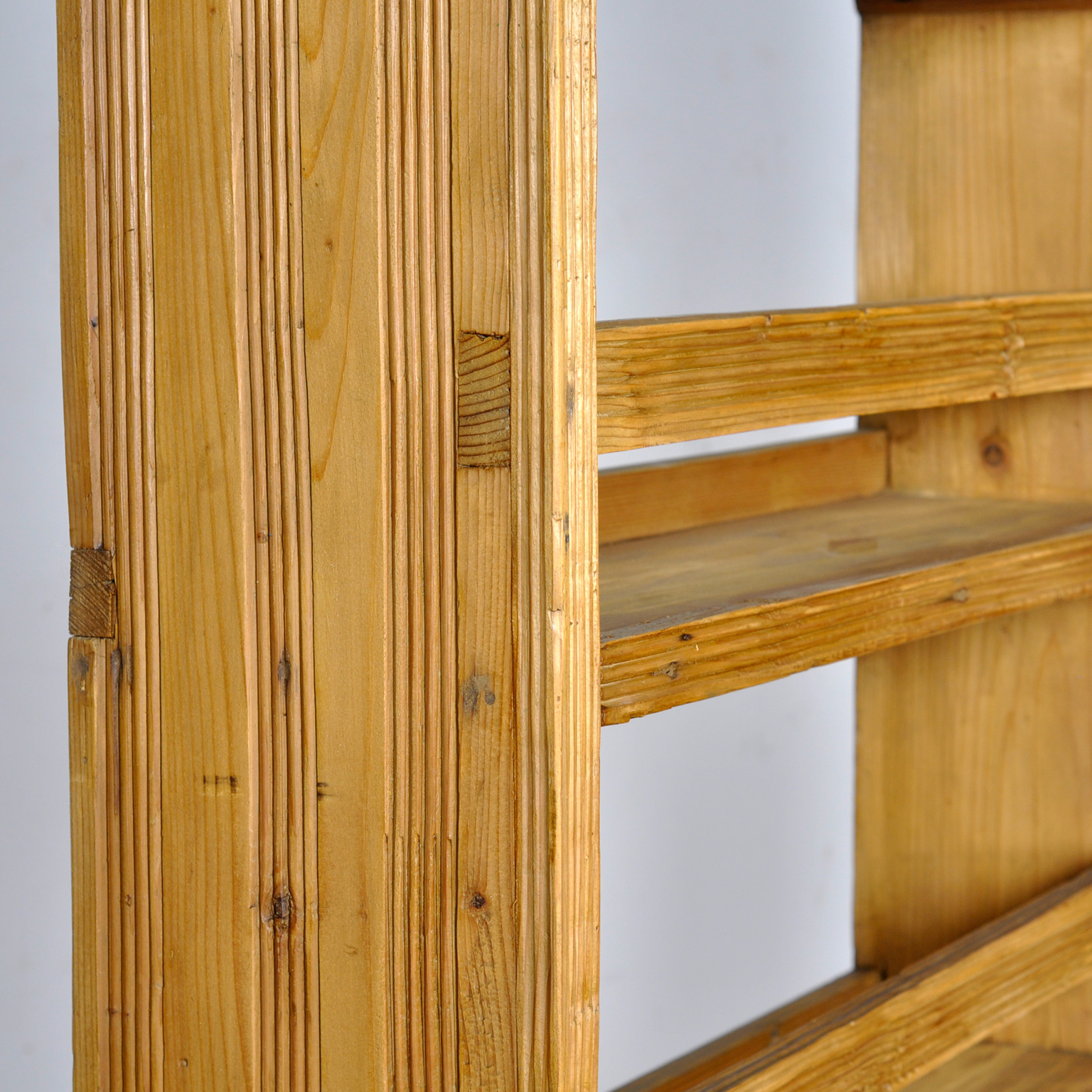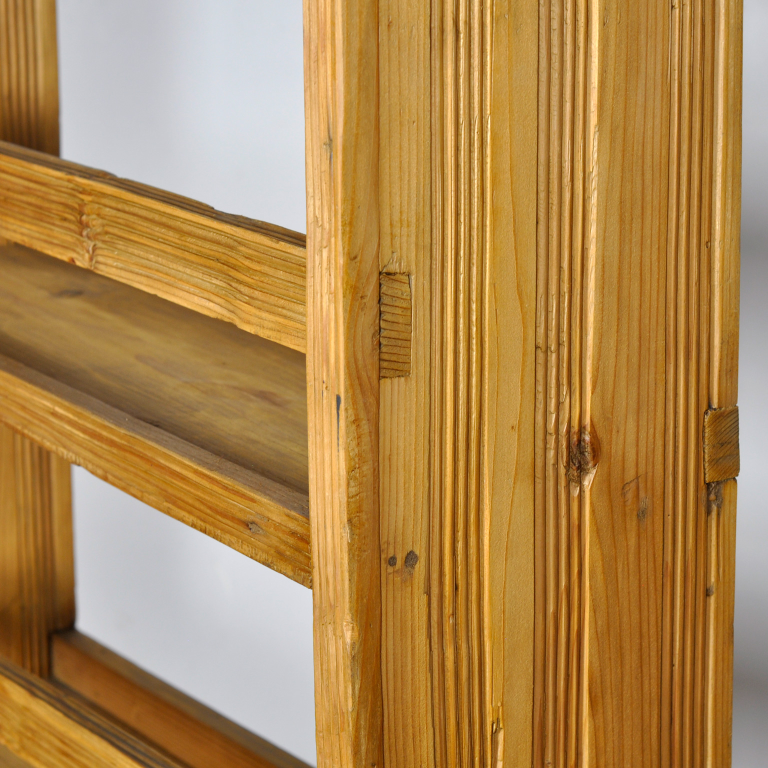 Deze open grenen kast uit circa 1930 is een charmant en functioneel meubel met een warme, authentieke uitstraling. De kast is voorzien van latjes aan de planken, waardoor boeken, servies of decoratieve items stevig op hun plek blijven en er niet uit kunnen vallen. Het natuurlijke grenenhout heeft een mooie, doorleefde patina die past bij zowel een landelijk als industrieel interieur. Dankzij het open ontwerp oogt de kast licht en ruimtelijk, ideaal voor de keuken, woonkamer of winkelpresentatie. Een karaktervolle vintage kast met praktische details en tijdloze uitstraling.