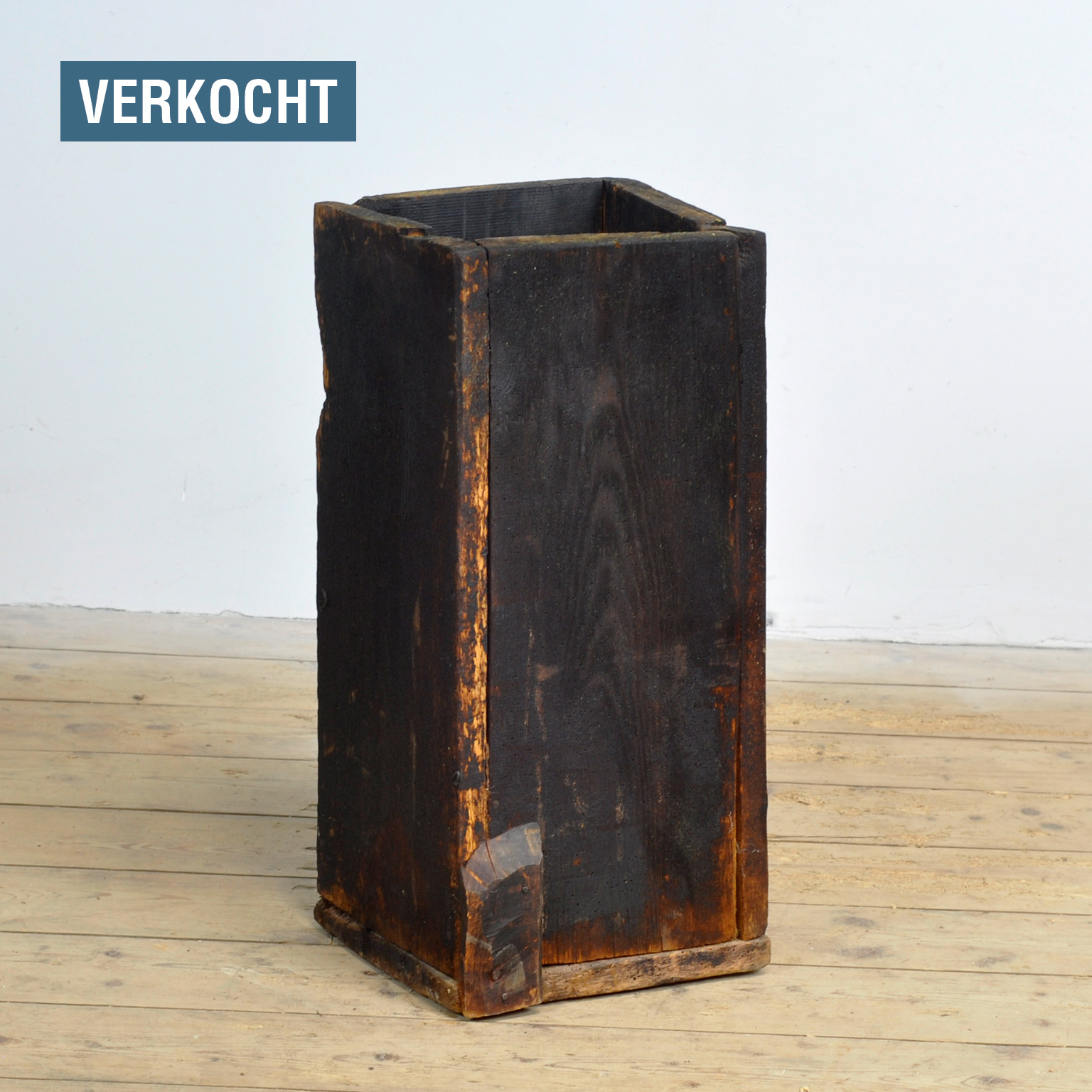 Primitief opslagvat gemaakt die werd gebruikt voor het opslaan van graan etc. Mooi object om te gebruiken als paraplubak. Het item is gemaakt van beukenhout. Circa 1900.