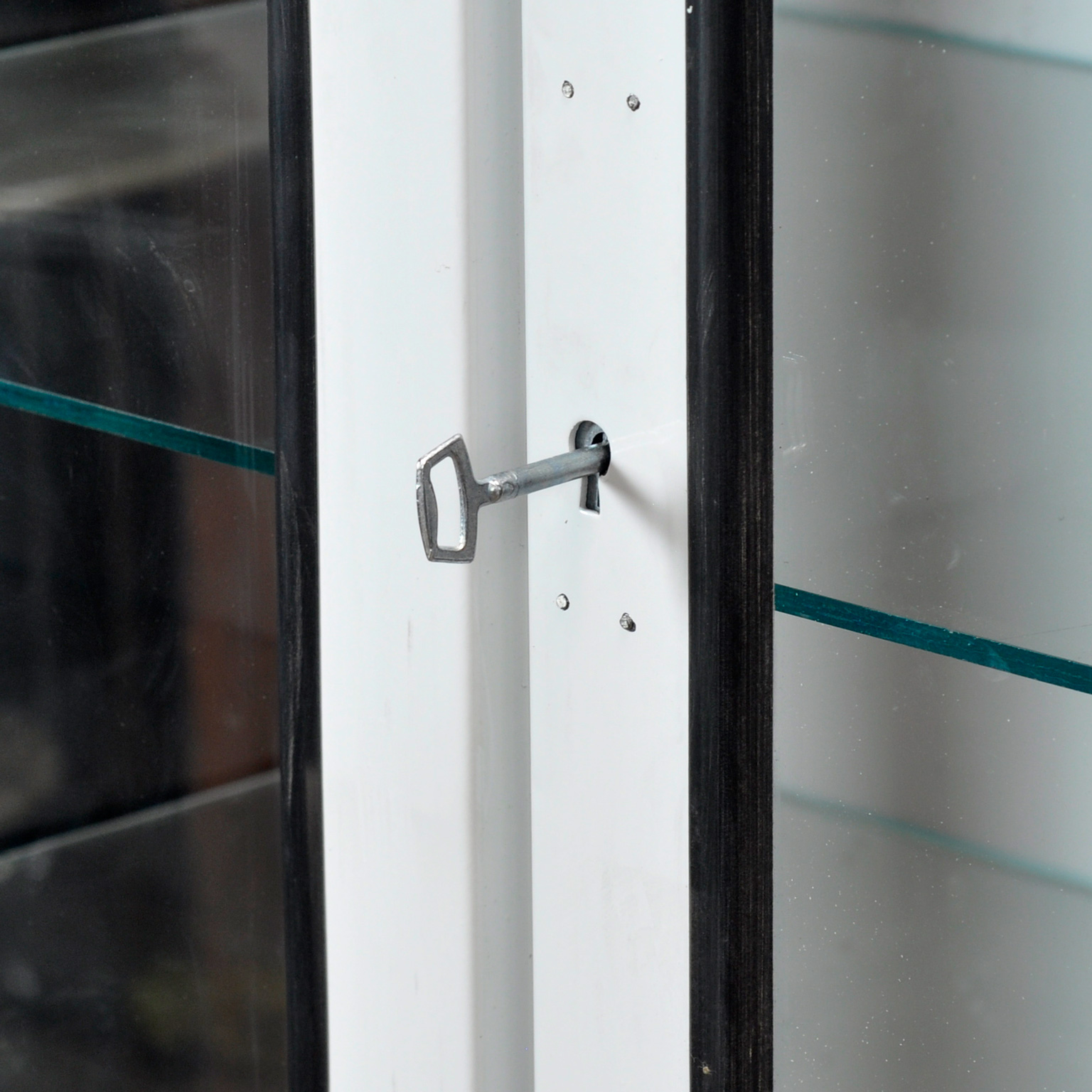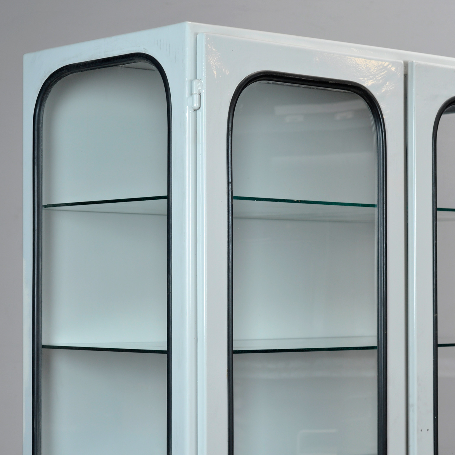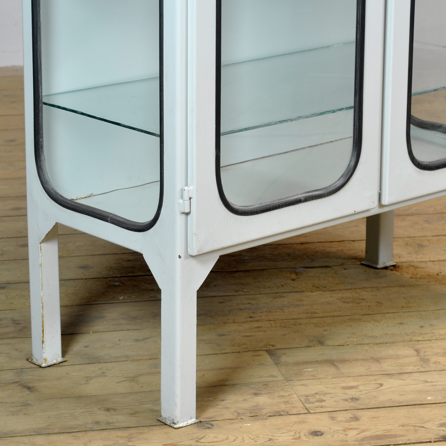 Vintage medicijnkast uit de jaren ’70, geproduceerd in Hongarije. Deze karaktervolle kast is gemaakt van ijzer en glas, waarbij het glas met een rubber strip in het staal is geklemd. De kast heeft een strak, tijdloos ontwerp en past perfect in een industrieel, modern of mid-century interieur. Voorzien van een goed werkend slot inclusief sleutel, ideaal voor het opbergen van servies, verzamelobjecten of designstukken. De kast wordt geleverd met vijf verstelbare glazen planken, zodat je de indeling eenvoudig kunt aanpassen. Een unieke en functionele eyecatcher met authentieke vintage uitstraling.