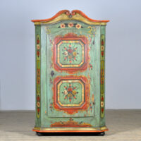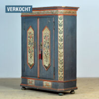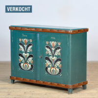Originele antieke Zweedse kast met blauwgroene beschildering in folklorestijl, anno 1906